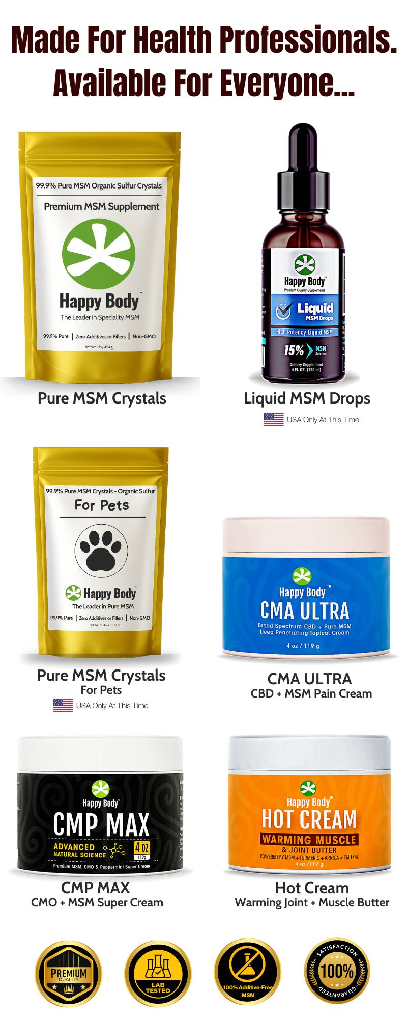 Pricing: For our website and catalog, the Regular (Reg) Price is also referred to as the MSRP is the “Manufacturer’s Suggested Retail Price.” The MSRP is understood to mean the price at which a manufacturer will recommend a retailer or reseller to sell a product for in stores, on the internet, or in catalogs. For Happy Body Store/Happy Body/HappyBody branded items, the MSRP is calculated based on a varying percentage above the product’s completed production price & associated administration, marketing & logistics. Prices can change at any time for any reason. Pricing & sales offers can change at any time without notice, and at our sole discretion.